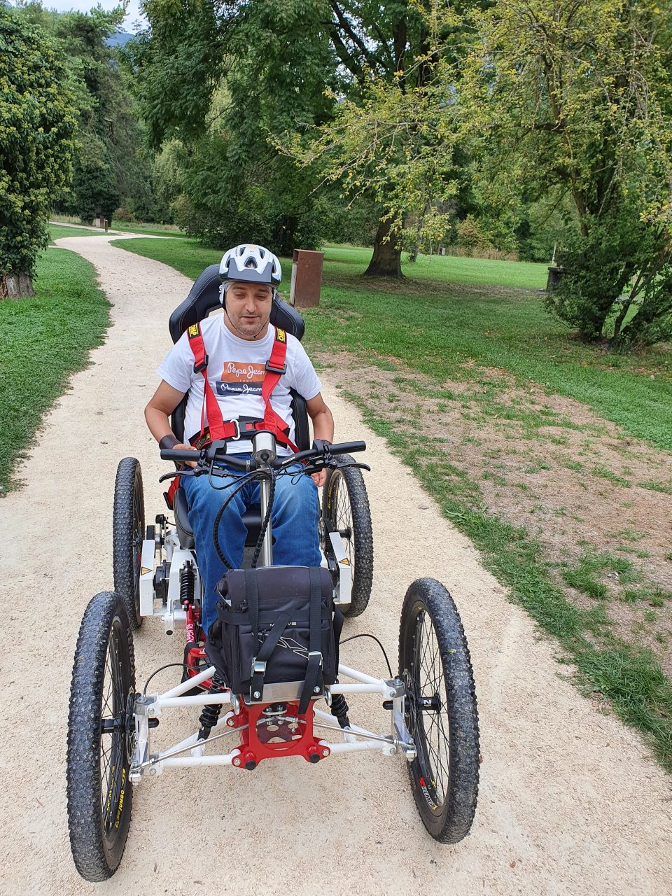 Mercredi 9 septembre, c’est au Parc de l’île d’amour, à Meylan que s’est déroulé l’essai du fauteuil tout terrain pour l’escale grenobloise.