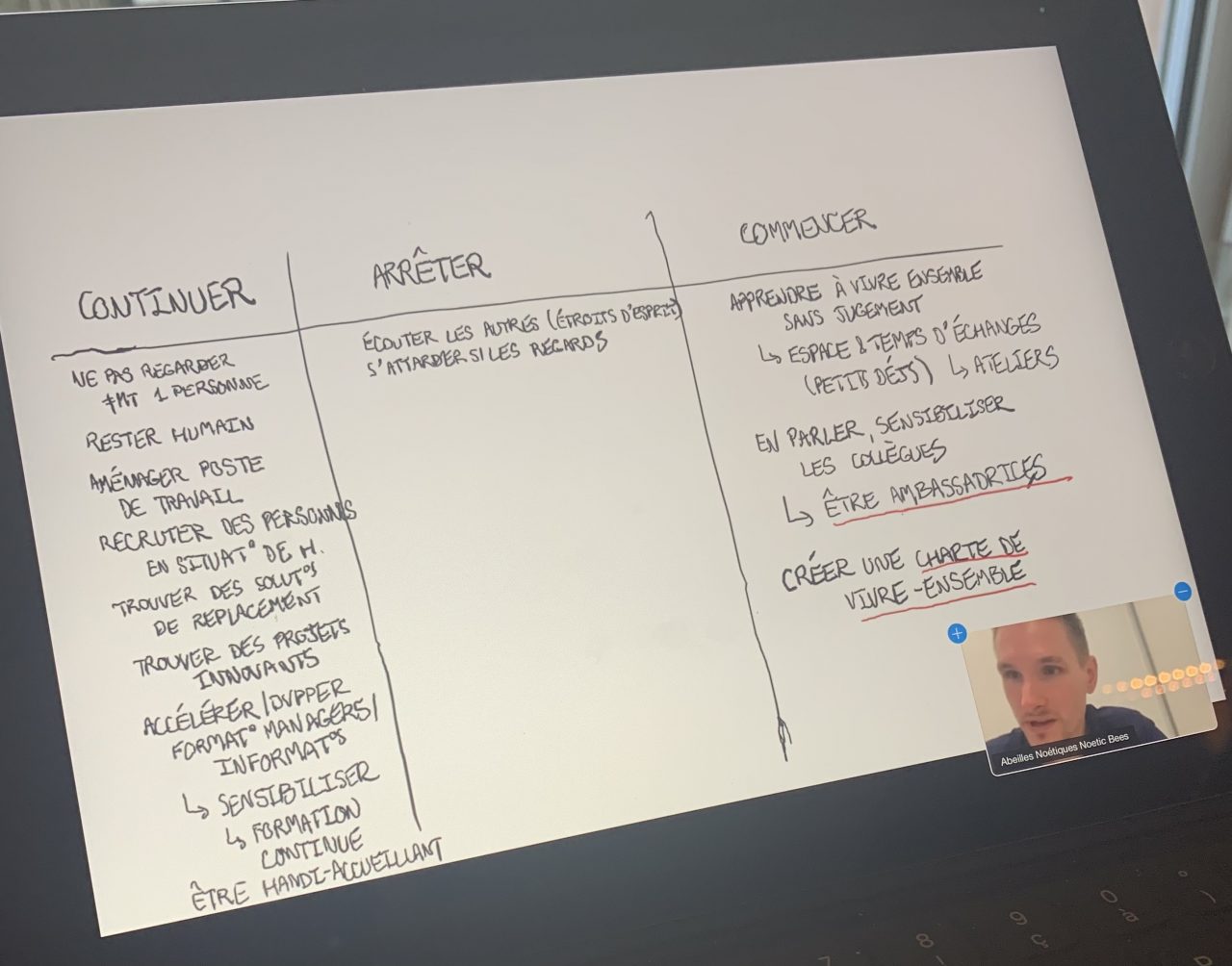 À l’initiative du Département des Ressources Humaines, de Sophie Mineau, référente Mission handicap au sein du siège de Vitalliance, et avec l’aide précieuse de NoeticBees, (spécialisé dans l’accompagnement et la conduite des changements dans les entreprises grâce à des outils de philosophie pratique), un atelier “café-handi-philo” a été mis en place.